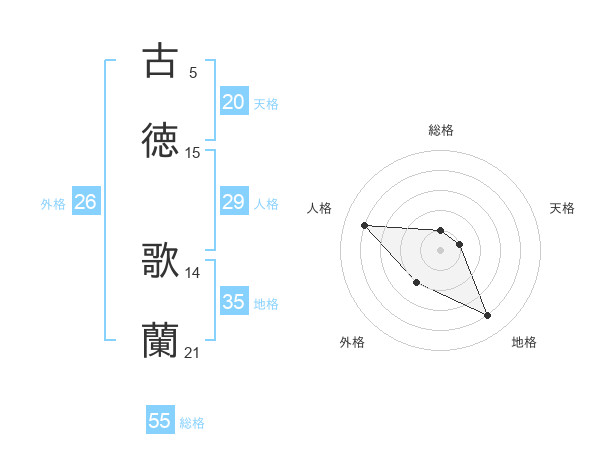 古徳 歌蘭さんを姓名の画数から五運を鑑定
