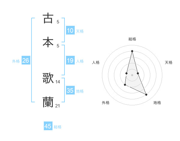 古本 歌蘭さんの総格は45画の4点!