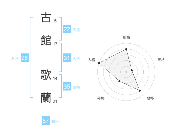 古館 歌蘭さんを姓名の画数から五運を鑑定