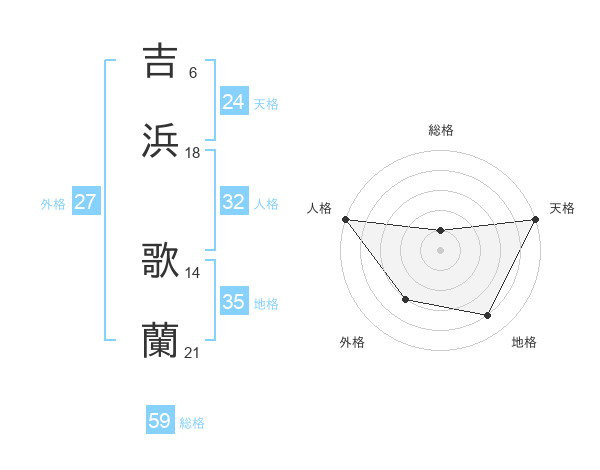 吉浜 歌蘭さんを姓名の画数から五運を鑑定