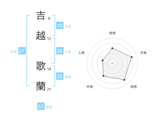 吉越 歌蘭さんを姓名の画数から五運を鑑定