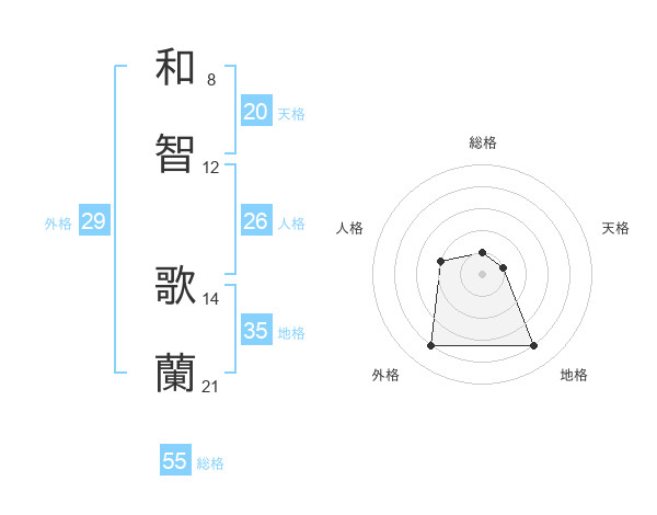 和智 歌蘭さんの天格は20画の1点!