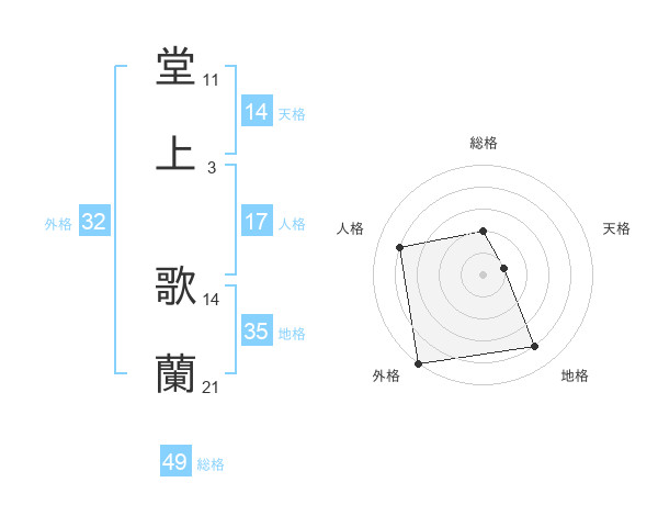 堂上 歌蘭さんを姓名の画数から五運を鑑定