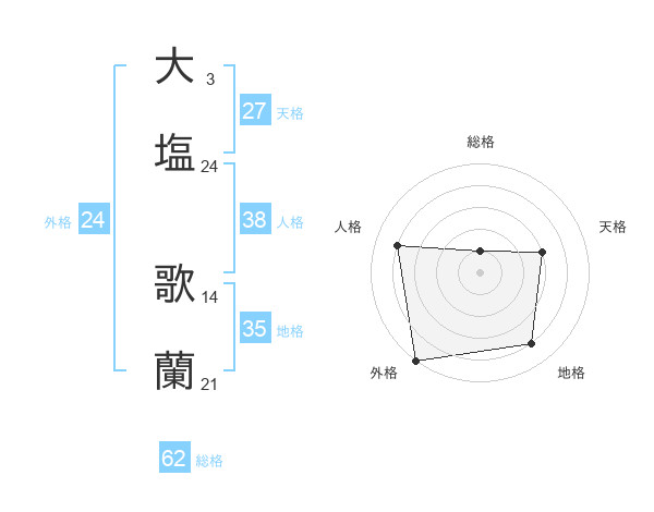 大塩 歌蘭さんを姓名の画数から五運を鑑定