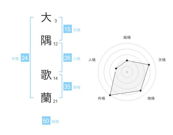 大隅 歌蘭さんを姓名の画数から五運を鑑定