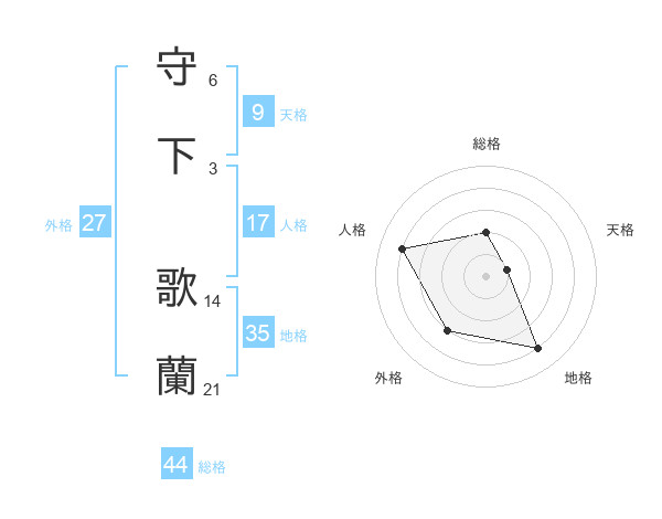 守下 歌蘭さんの総格は44画の2点!