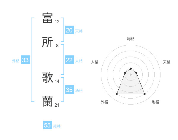 富所 歌蘭さんの総格は55画の1点!