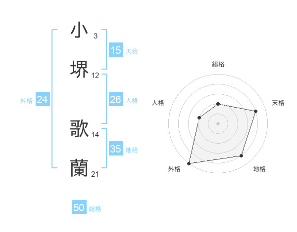 小堺 歌蘭さんの総格は50画の2点!