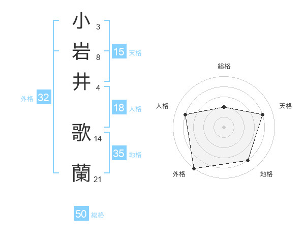 小岩井 歌蘭さんを姓名の画数から五運を鑑定