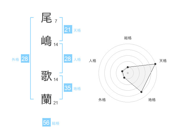 尾嶋 歌蘭さんを姓名の画数から五運を鑑定