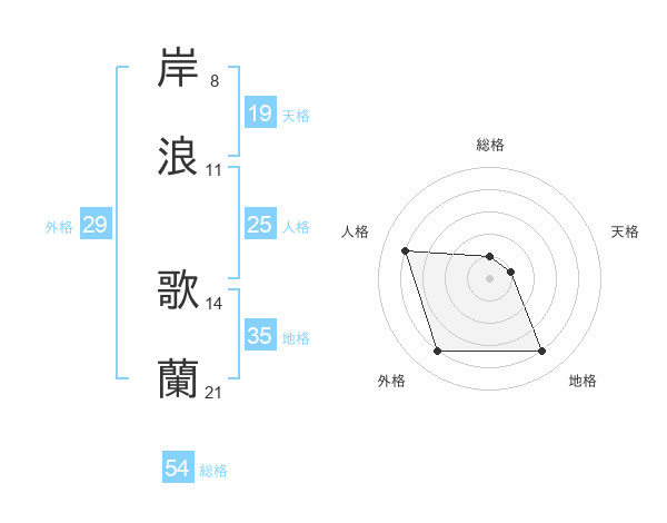 岸浪 歌蘭さんを姓名の画数から五運を鑑定
