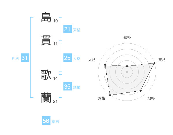 島貫 歌蘭さんの総格は56画の1点!