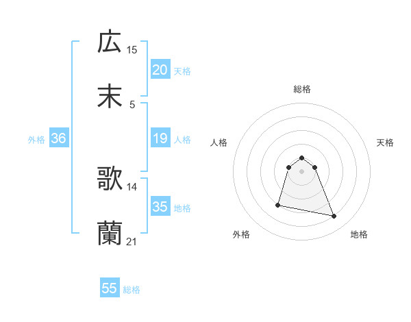 広末 歌蘭さんの総格は55画の1点!