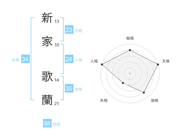 新家 歌蘭さんを姓名の画数から五運を鑑定
