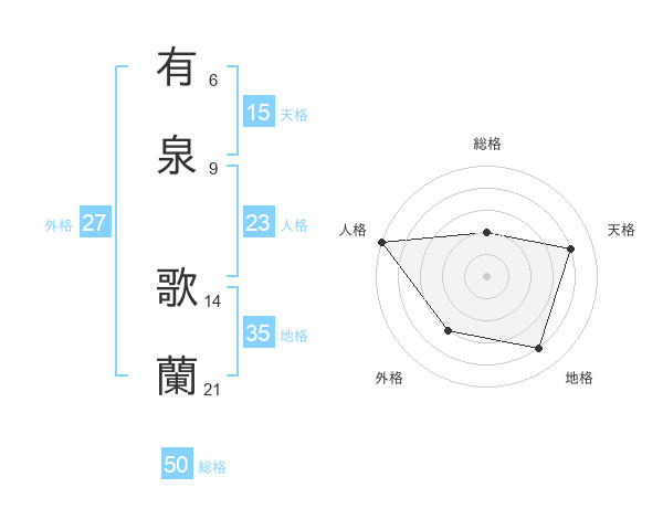 有泉 歌蘭さんの総格は50画の2点!