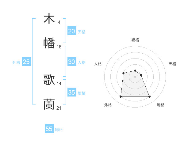 木幡 歌蘭さんの総格は55画の1点!