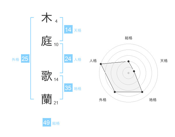 木庭 歌蘭さんの総格は49画の2点!