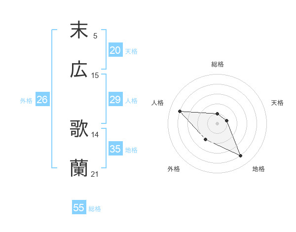 末広 歌蘭さんの総格は55画の1点!