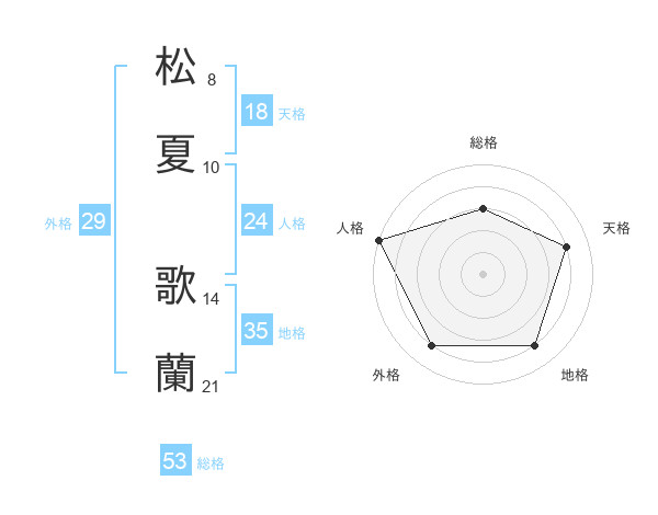 松夏 歌蘭さんを姓名の画数から五運を鑑定