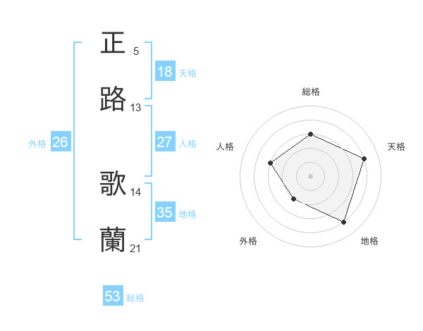 正路 歌蘭さんの総格は53画の3点!