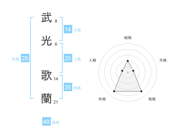 武光 歌蘭さんの総格は49画の2点!