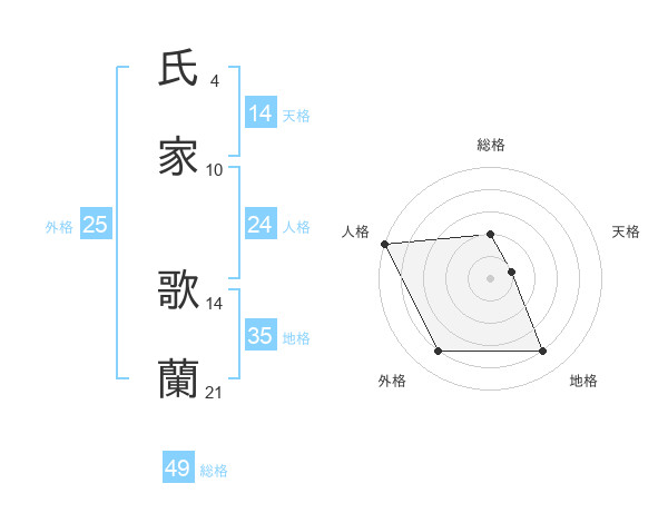 氏家 歌蘭さんの総格は49画の2点