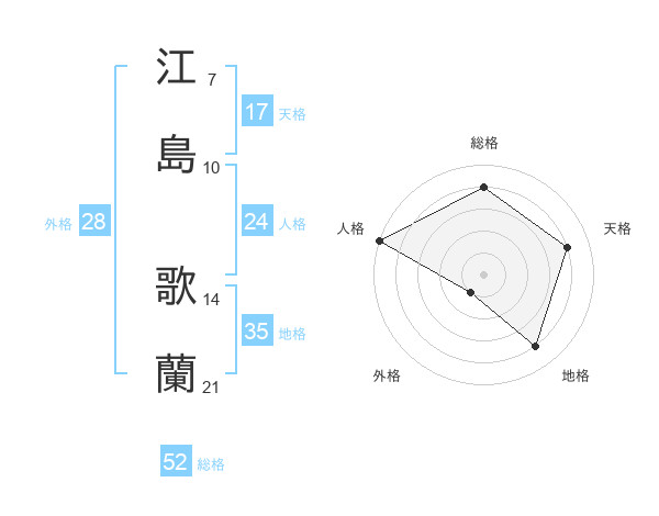 江島 歌蘭さんを姓名の画数から五運を鑑定