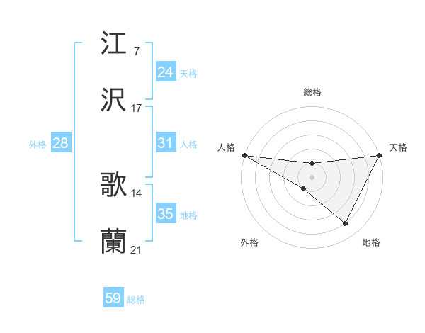 江沢 歌蘭さんの天格は24画の5点!