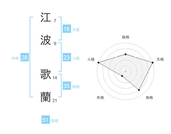 江波 歌蘭さんを姓名の画数から五運を鑑定