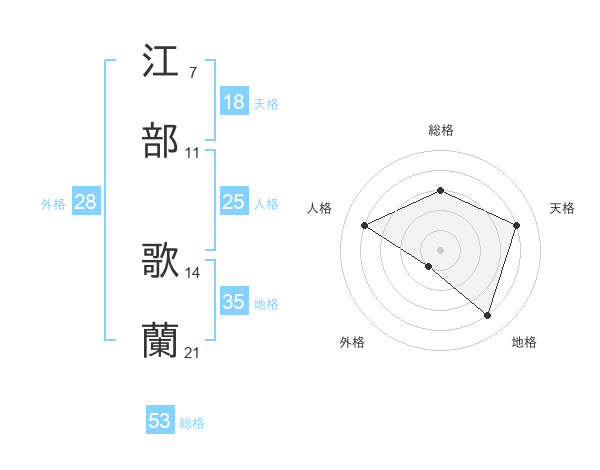 江部 歌蘭さんを姓名の画数から五運を鑑定