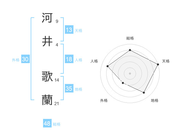 河井 歌蘭さんの総格は48画の4点!