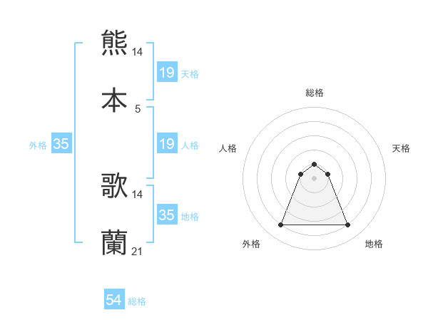 熊本 歌蘭さんの外格は35画の4点!