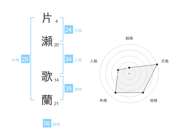 片瀬 歌蘭さんを姓名の画数から五運を鑑定