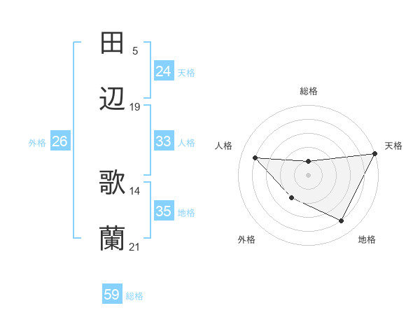 田辺 歌蘭さんを姓名の画数から五運を鑑定