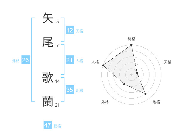 矢尾 歌蘭さんを姓名の画数から五運を鑑定