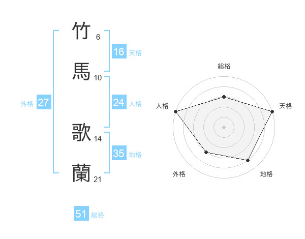 竹馬 歌蘭さんを姓名の画数から五運を鑑定
