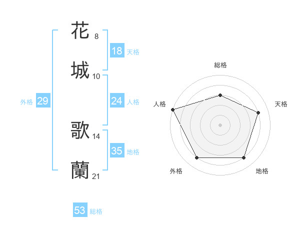 花城 歌蘭さんを姓名の画数から五運を鑑定