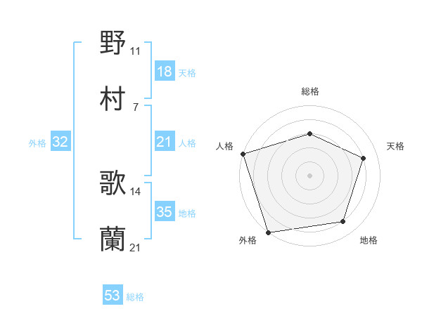 野村 歌蘭さんの総格は53画の3点!