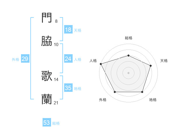 門脇 歌蘭さんの総格は53画の3点!