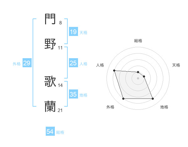 門野 歌蘭さんの人格は25画の4点!