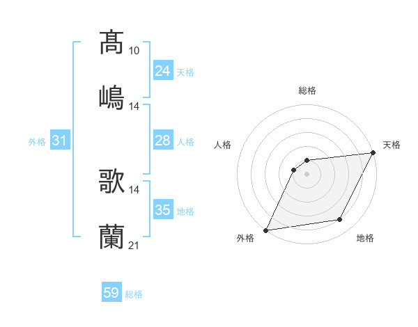 髙嶋 歌蘭さんを姓名の画数から五運を鑑定