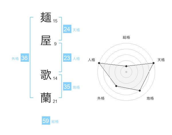 麺屋 歌蘭さんを姓名の画数から五運を鑑定