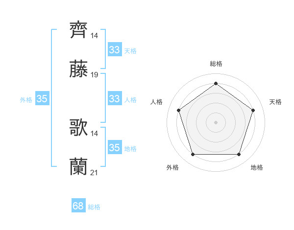 齊藤 歌蘭さんの総格は68画の4点!