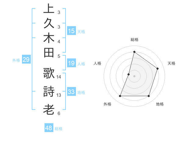 上久木田 歌詩老さんを姓名の画数から五運を鑑定
