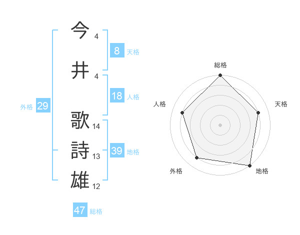 今井 歌詩雄さんを姓名の画数から五運を鑑定