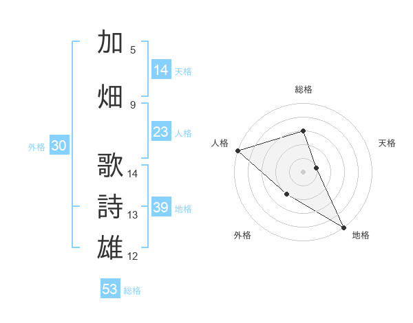 加畑 歌詩雄さんの総格は53画の3点!