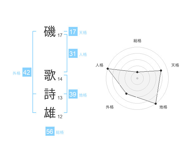 磯 歌詩雄さんの天格は17画の4点!