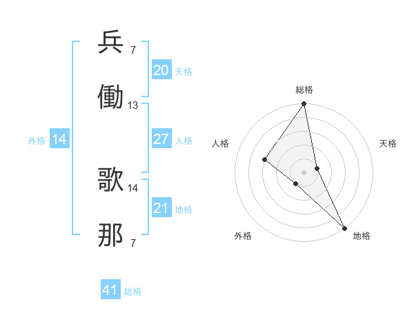 兵働 歌那さんを姓名の画数から五運を鑑定