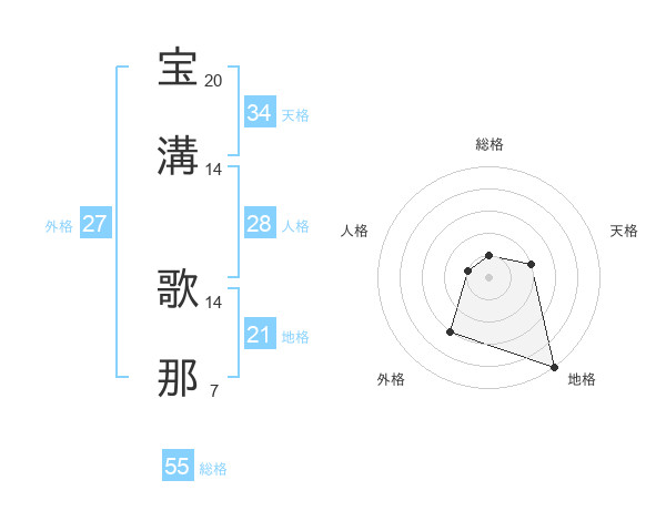 宝溝 歌那さんを姓名の画数から五運を鑑定