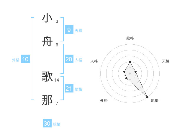 小舟 歌那さんを姓名の画数から五運を鑑定
